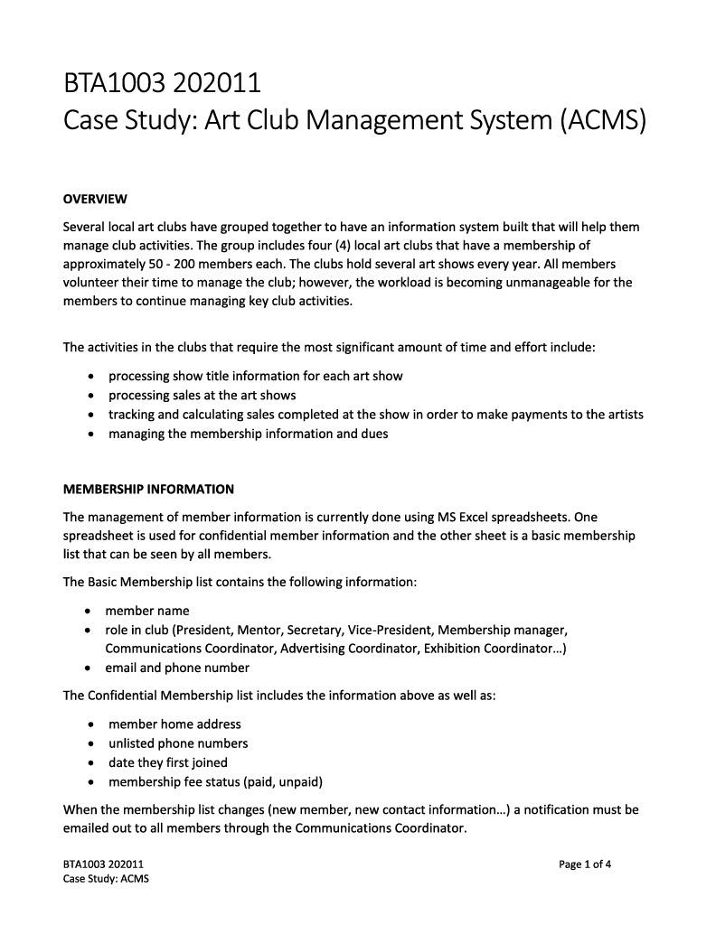 Solved Bta1003 202011 Case Study Art Club Management System Chegg Com